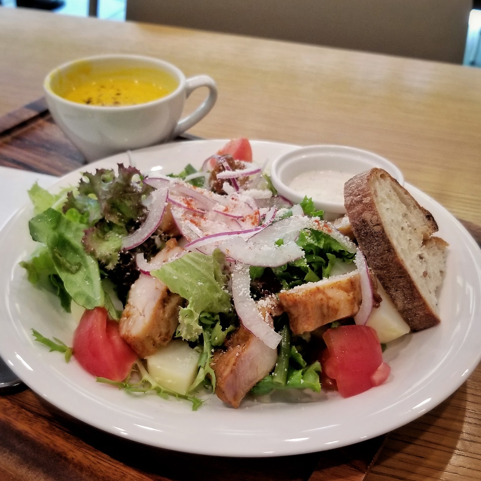 【6/12(tue)】外苑前、国内産の有機野菜によるサラダを中心にしたブラッセリー、CITRON<シトロン>でランチ。サラダシトロンは、歯応えしっかりしたミックスリーフをベースに、キヌア、レンズ豆、アボカド、自家製のドライトマト、木綿豆腐に、パリ・東京ドレッシングで、味覚があちこちに広がる素敵な素材とアレンジでした。熱々のプロヴァンス野菜スープも、少し苦味があって美味しい。青山〜表参道界隈にぴったりな雰囲気のエクステリア&インテリアにBGMはフランス語の有線、料理を運んできてくれる外人さんは日本語堪能ですが最後に一言「Bon appetit」。ひっきりなしのお客さんは100%女子、eat-inですか?と2回聞かれました(笑)